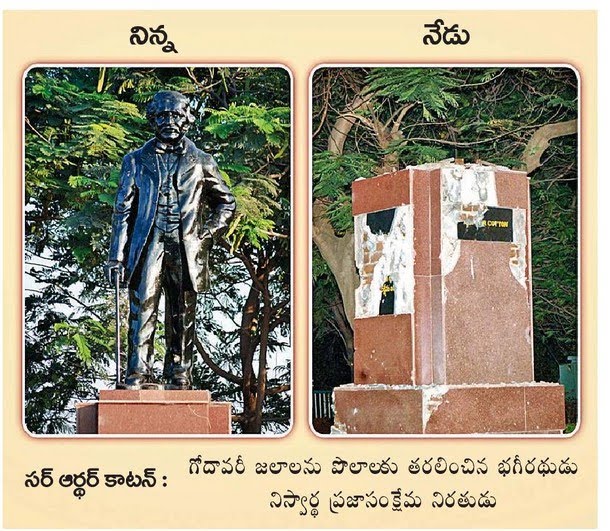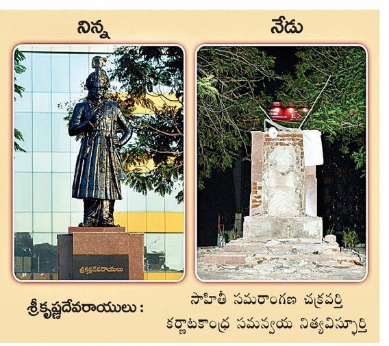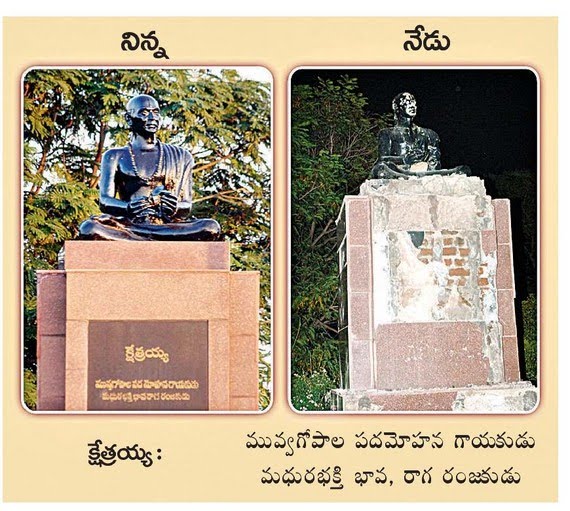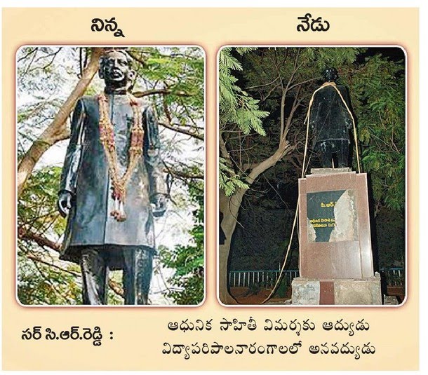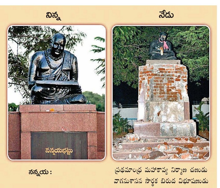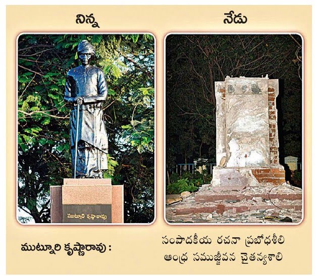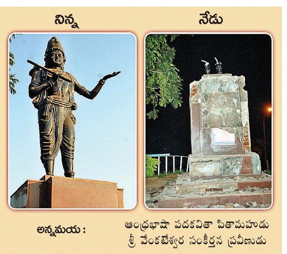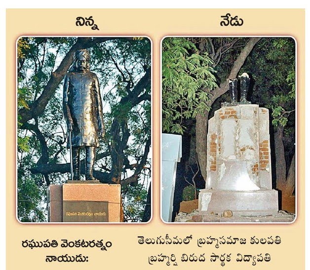 Destruction of statues rocks : statues Statues of Telugu personalities damaged